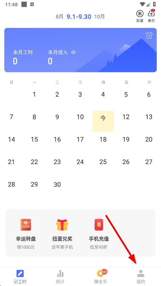 1、打開小時工記賬應(yīng)用,點(diǎn)擊底部導(dǎo)航欄最右側(cè)的我的選項(xiàng),進(jìn)入個人相關(guān)界面。