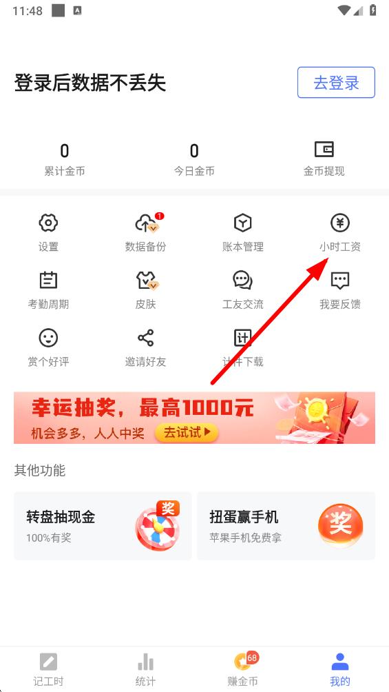 2、在個人界面中,找到并點(diǎn)擊小時工資選項(xiàng),進(jìn)入小時工資設(shè)置頁面。