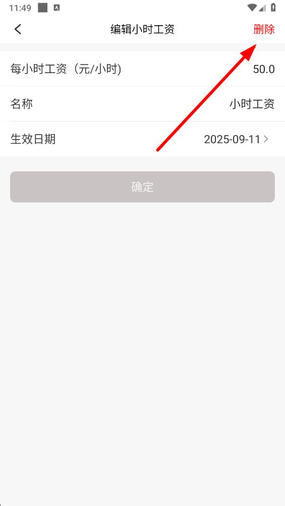 4、在編輯小時工資界面,點(diǎn)擊右上角的刪除按鈕,按照提示確認(rèn)操作后,即可刪除該小時工資。