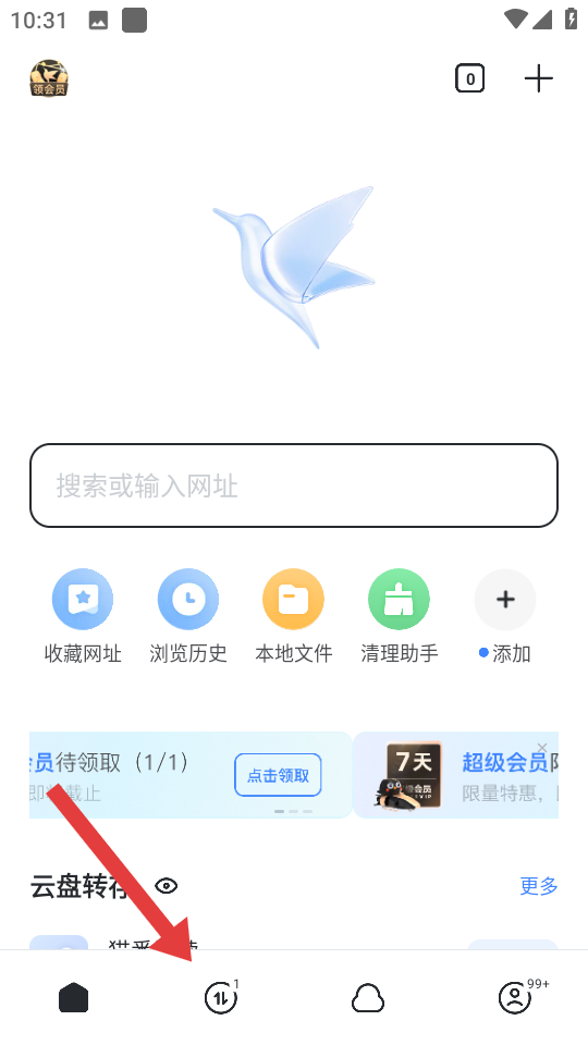 1、打開迅雷APP的軟件,點擊底部導航欄中間的下載圖標,進入下載的管理頁面。