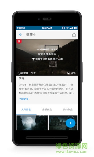 視覺中國攝影社區(qū)(500px.me)是中國專業(yè)的創(chuàng)意攝影師社區(qū)之一,由視覺中國與國際知名圖片社區(qū)500px.com聯(lián)合推出。在社區(qū)里,我們一起來分享照片、 發(fā)現(xiàn)好作品、交流拍攝技巧、創(chuàng)建屬于自己的攝影個人主頁。同時社區(qū)會將攝影師的攝影作品推送給上億部手機作為鎖屏雜志和壁紙,或是選入圖片庫進行銷售,更大限度地發(fā)揮圖片的價值,助力攝影師建立自己的個人品牌。