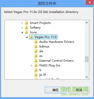 提示:Select Sony Vegas Pro 11.0x (32bit) installation directory
