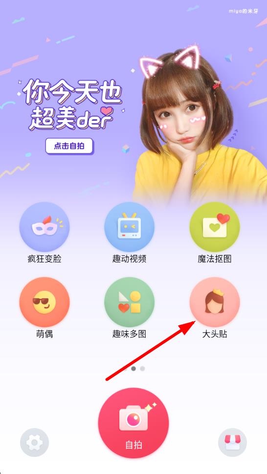 1、打開天天P圖應(yīng)用,在主界面眾多功能圖標(biāo)里點(diǎn)擊大頭貼選項(xiàng)。