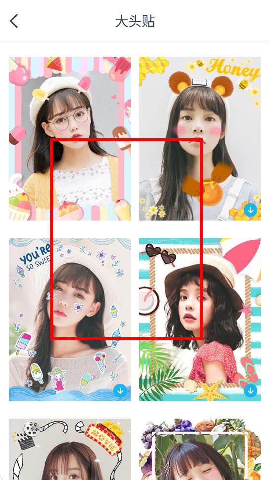 3、在大頭貼拍攝界面中,選擇喜歡的大頭貼模板,調(diào)整姿勢(shì)和表情后進(jìn)行拍攝即可。