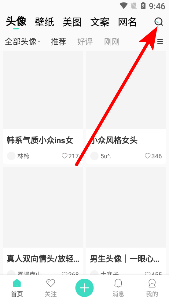 1、在頭像APP首頁,點擊右上角搜索圖標,進入搜索頁面。