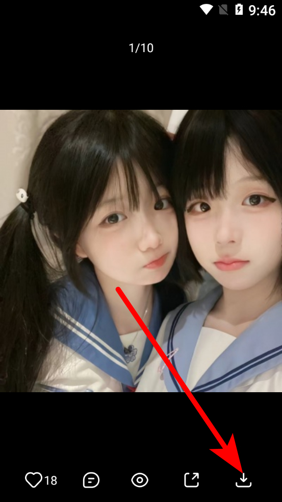 4、在圖片詳情界面,點擊下載圖標,即可完成頭像圖片的搜索下載操作。