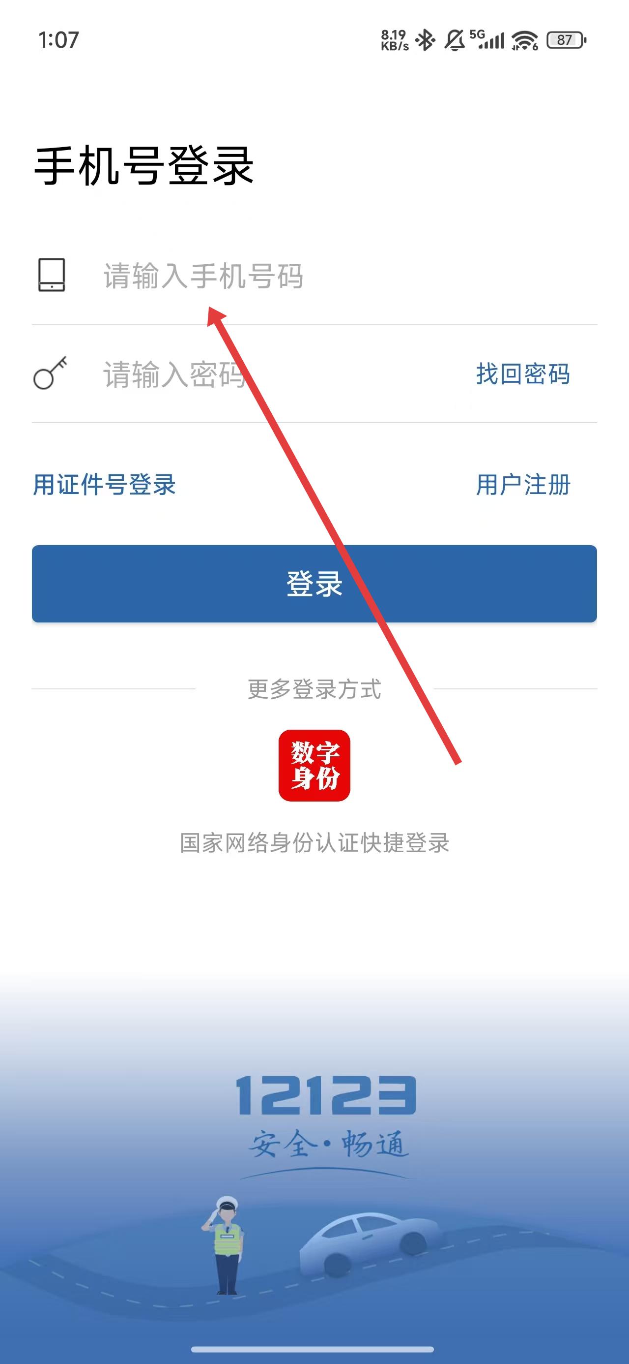 4、在跳轉(zhuǎn)到登錄頁面時,可以在輸入框中輸入要切換的賬號后完成登錄。