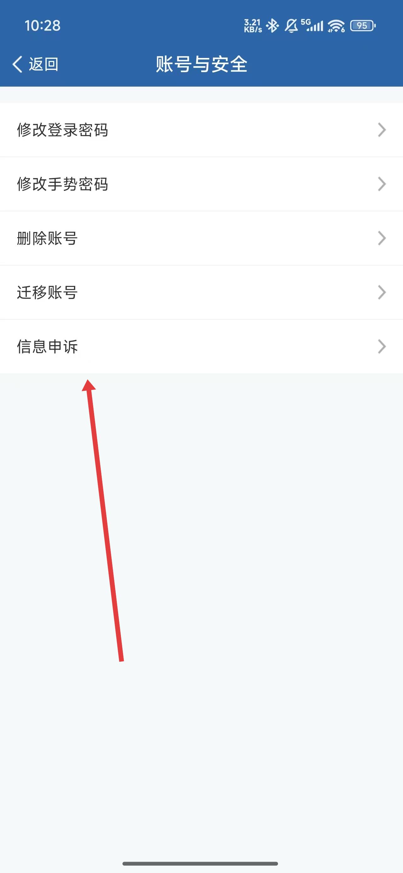 3、可以點擊信息申訴選項,進入申訴操作。