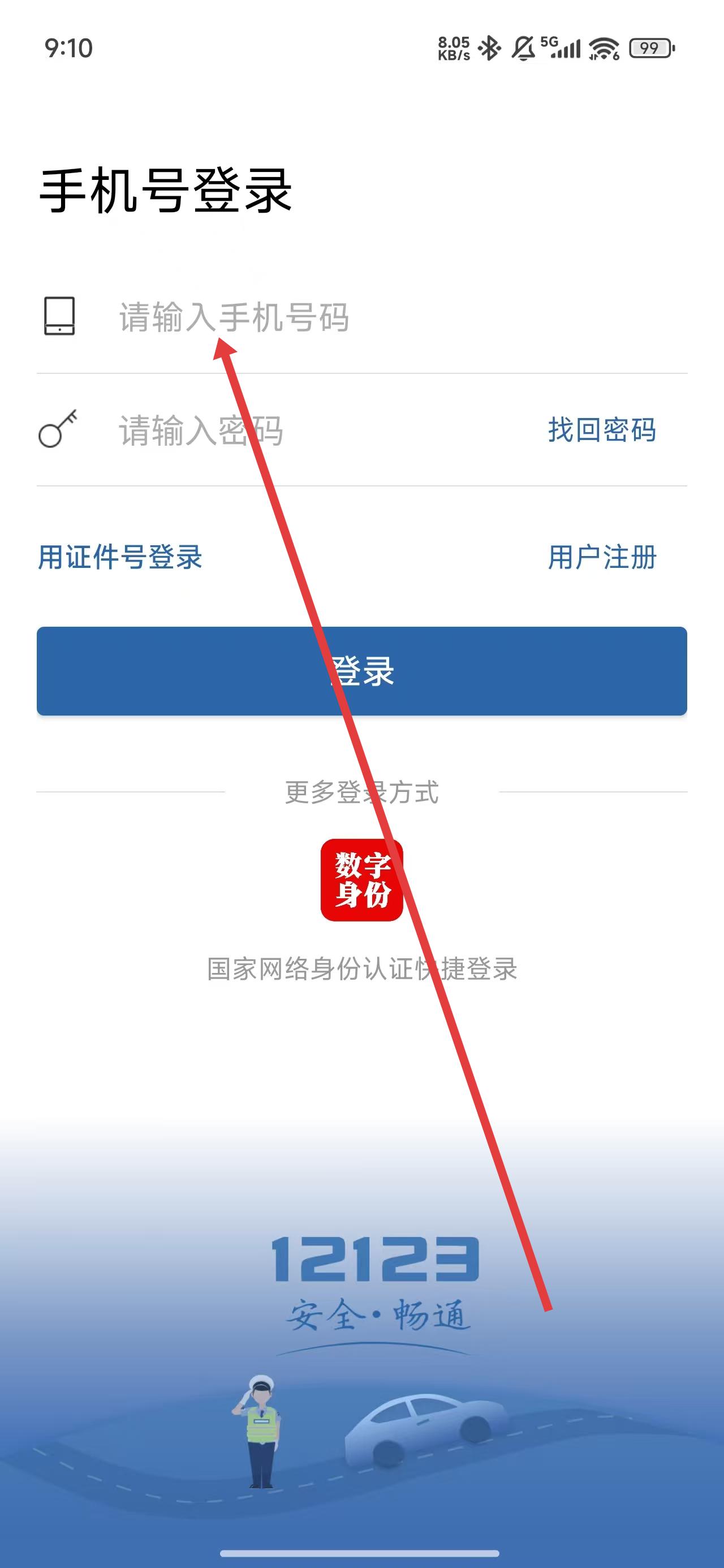 2、在進(jìn)入到登錄界面時(shí),點(diǎn)擊輸入框依次輸入手機(jī)號(hào)碼和密碼后完成登錄操作。