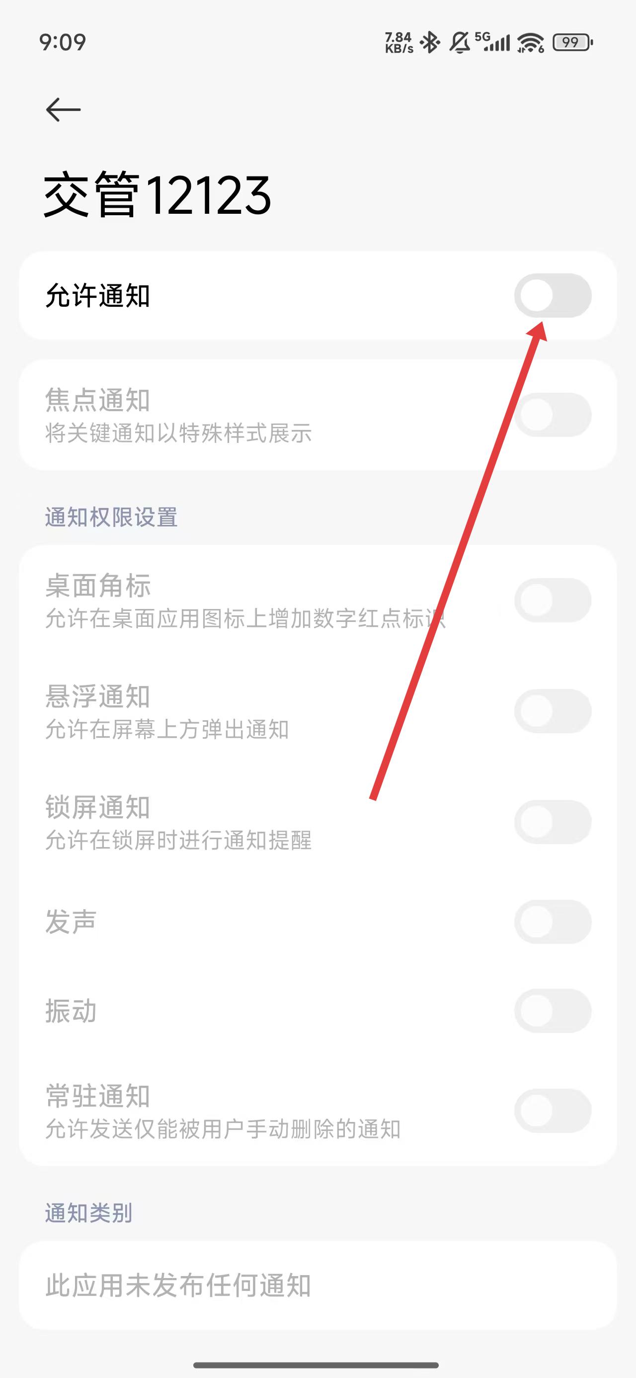 4、跳轉(zhuǎn)到設(shè)置頁面后,可以點(diǎn)擊允許通知右側(cè)按鈕打開消息通知。