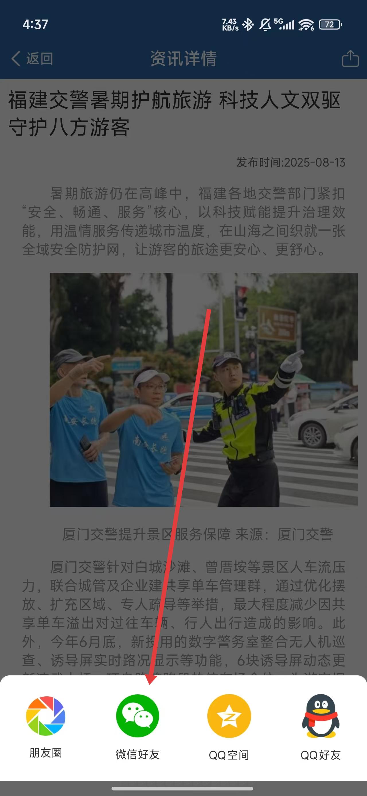 3、在進入到資訊詳情頁面中,可以點擊右上角圖標(biāo)進行轉(zhuǎn)發(fā)操作。