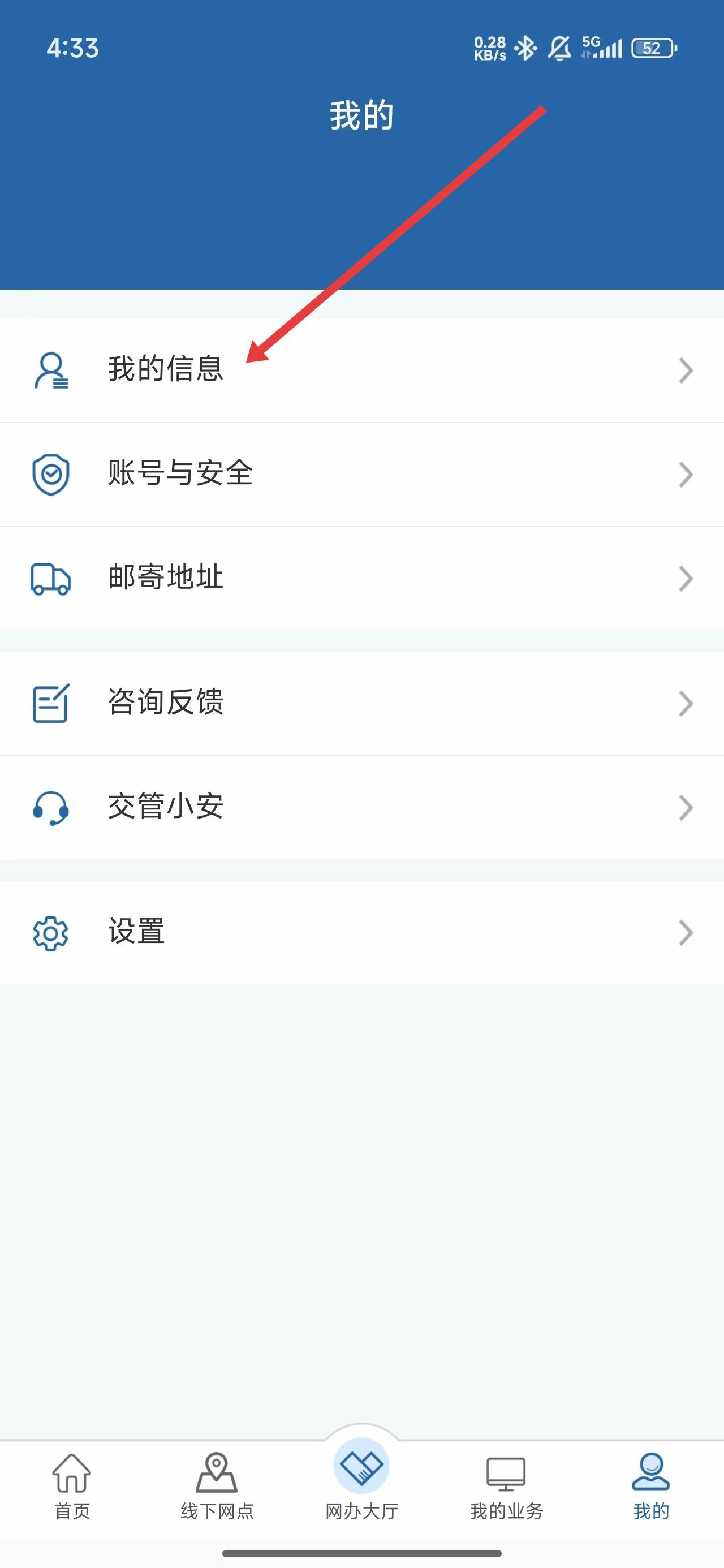 1、在我的頁面中,點(diǎn)擊我的信息按鈕進(jìn)入修改編輯信息。