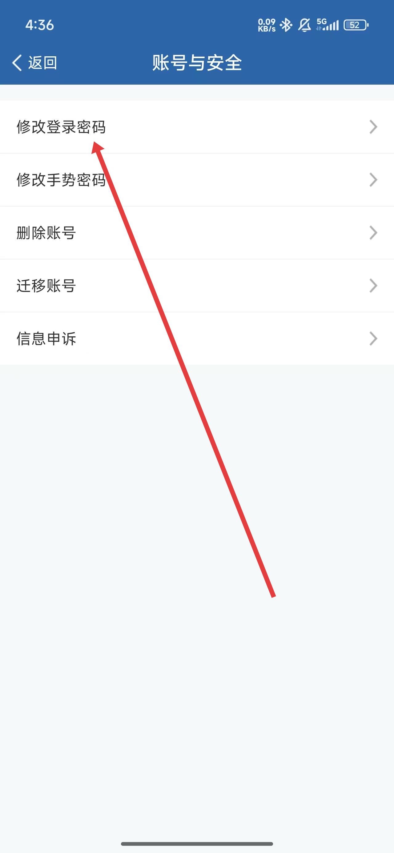 2、在進(jìn)入到賬號與安全頁面后,可以點(diǎn)擊修改登錄密碼選項(xiàng),進(jìn)入修改。