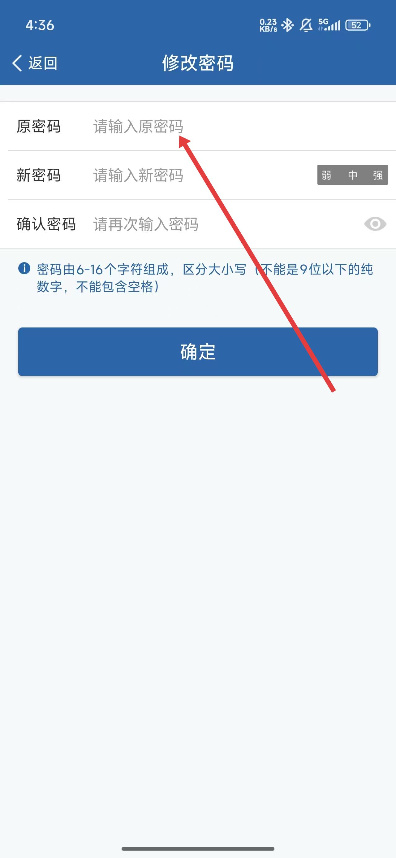 3、在修改密碼頁面中,需在輸入框下輸入原密碼后填寫新密碼進(jìn)行修改。