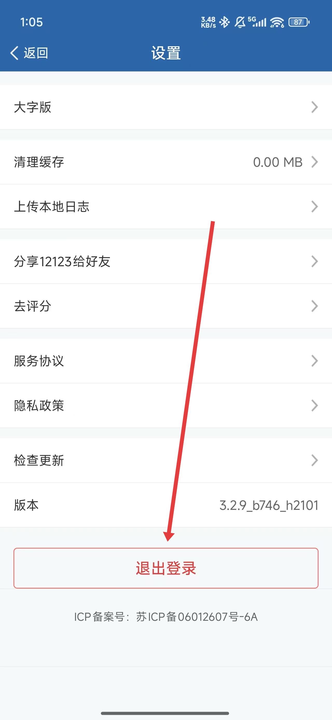 3、在設(shè)置頁(yè)面中,可以點(diǎn)擊退出登錄按鈕,進(jìn)行退出操作。
