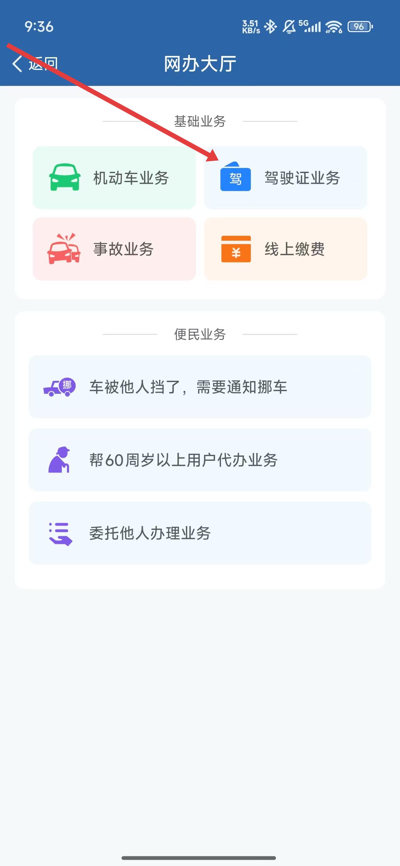 1、可以通過點擊基礎業(yè)務模塊下的駕駛證業(yè)務選項,進入查看相關業(yè)務。