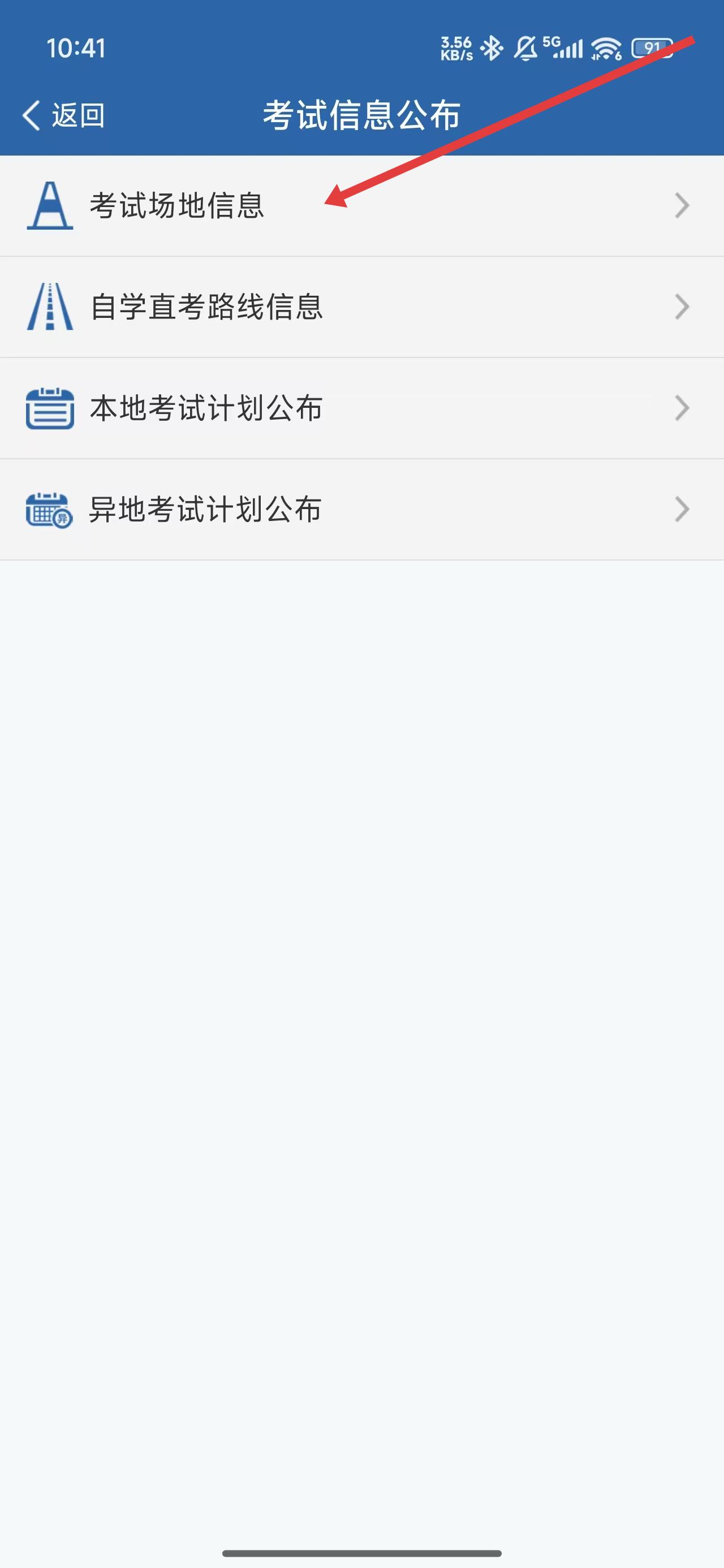 3、在跳轉(zhuǎn)到考試信息公布頁面中,可以點擊考試場地信息進入查看詳情。