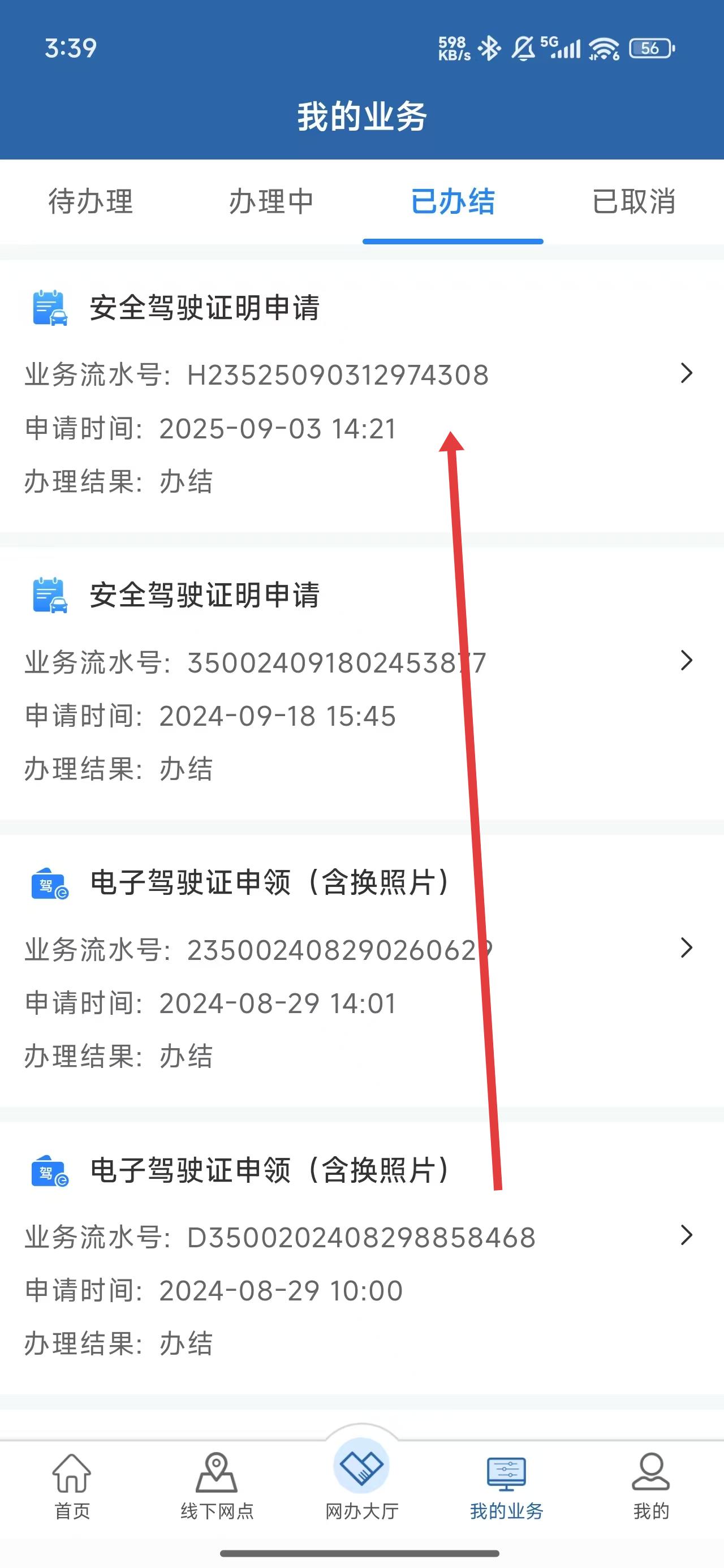 3、在已辦結(jié)頁面里,可以點(diǎn)擊業(yè)務(wù)信息,進(jìn)入查看辦理的詳情。