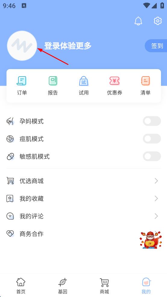 2、在個(gè)人中心頁面,點(diǎn)擊上方的“登錄體驗(yàn)更多”區(qū)域,進(jìn)入登錄界面。