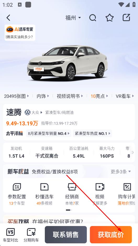 3、在車型詳情頁,點擊右下方獲取底價按鈕。