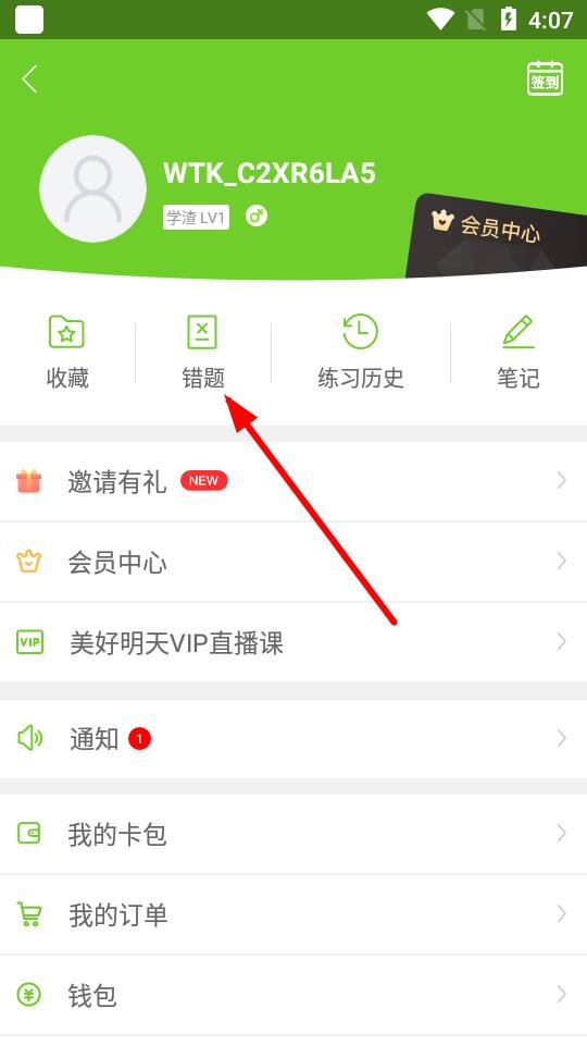 2、在個人界面中,找到并點擊錯題選項,進入錯題查看頁面。