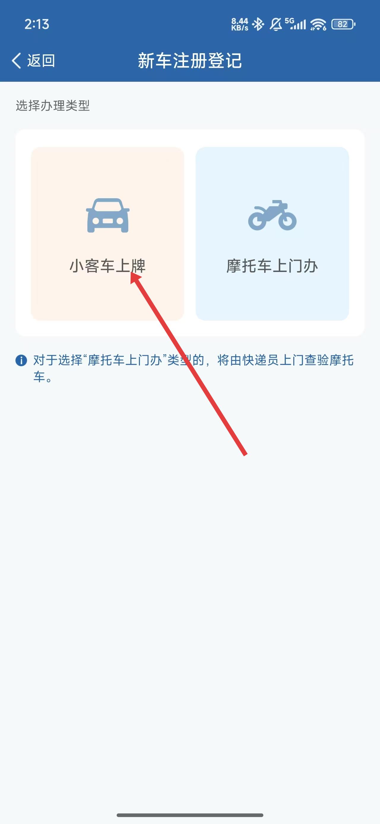 4、可以通過(guò)點(diǎn)擊小客車上牌選項(xiàng),開(kāi)始執(zhí)行小客車上牌操作。