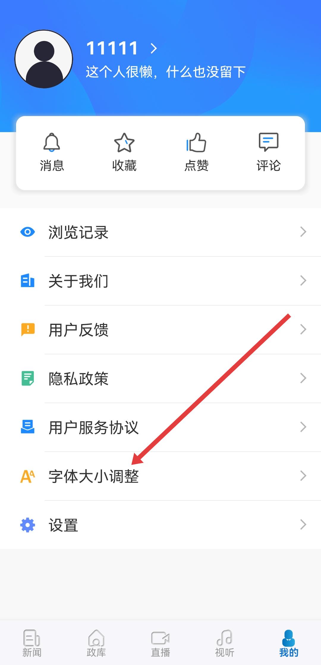 2、在個(gè)人頁(yè)面中,找到并點(diǎn)擊字體大小調(diào)整選項(xiàng),進(jìn)入字號(hào)的調(diào)整界面。