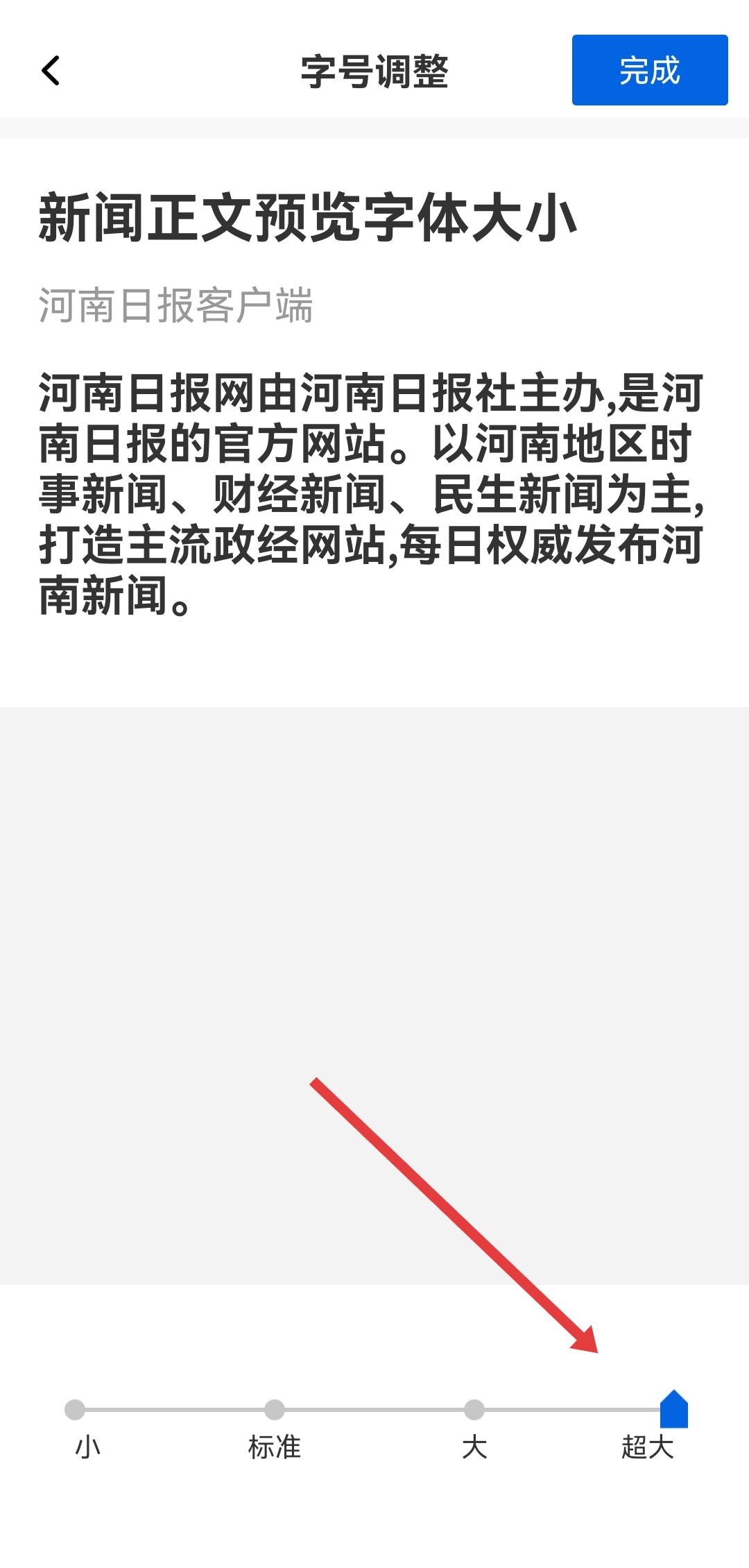 3、通過(guò)滑動(dòng)底部的字號(hào)滑塊,調(diào)整到合適的字體大小后,點(diǎn)擊完成即可設(shè)置字體大小。