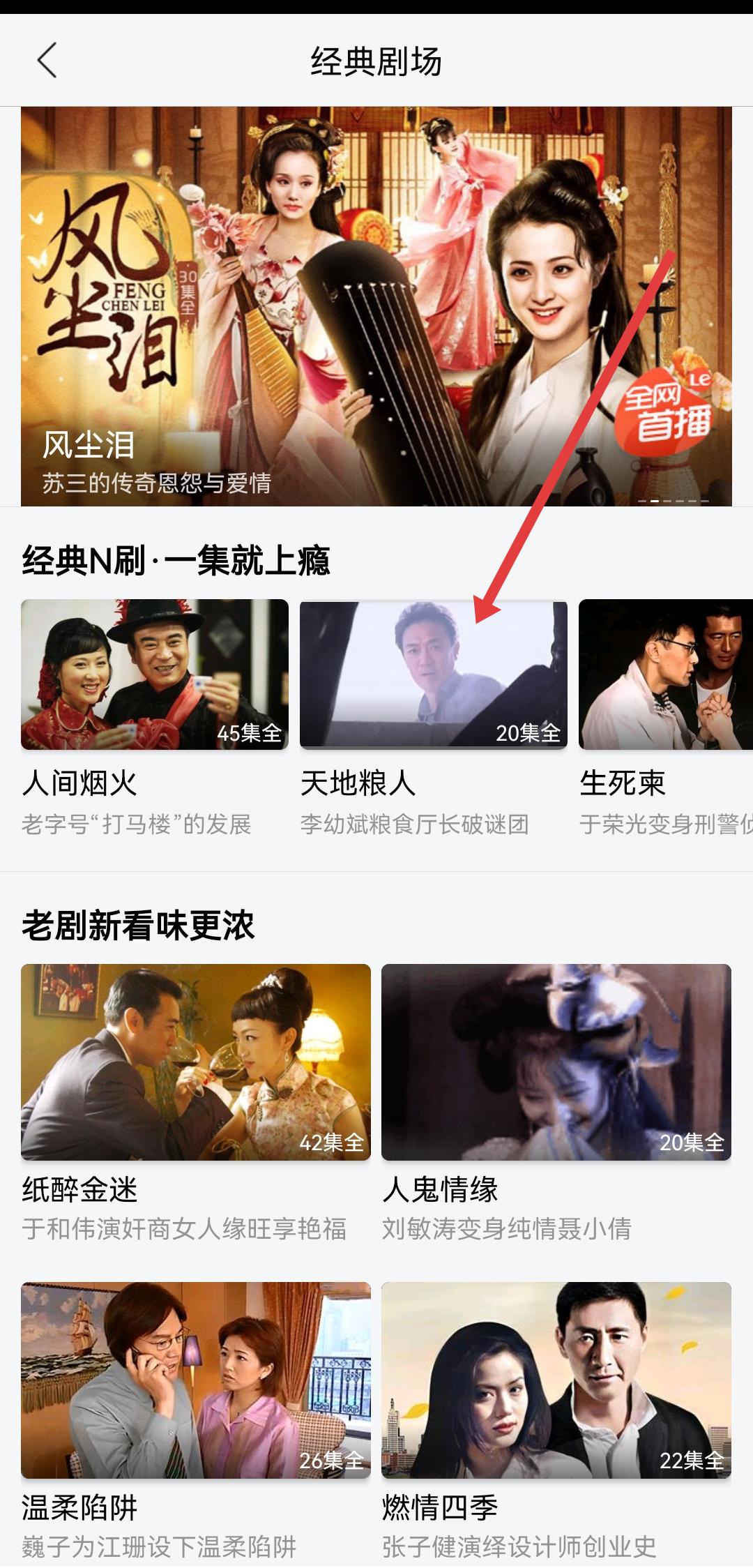 1、打開樂視視頻APP,在經(jīng)典劇場等板塊中,點(diǎn)擊想要下載的電視劇,進(jìn)入該劇播放的頁面。
