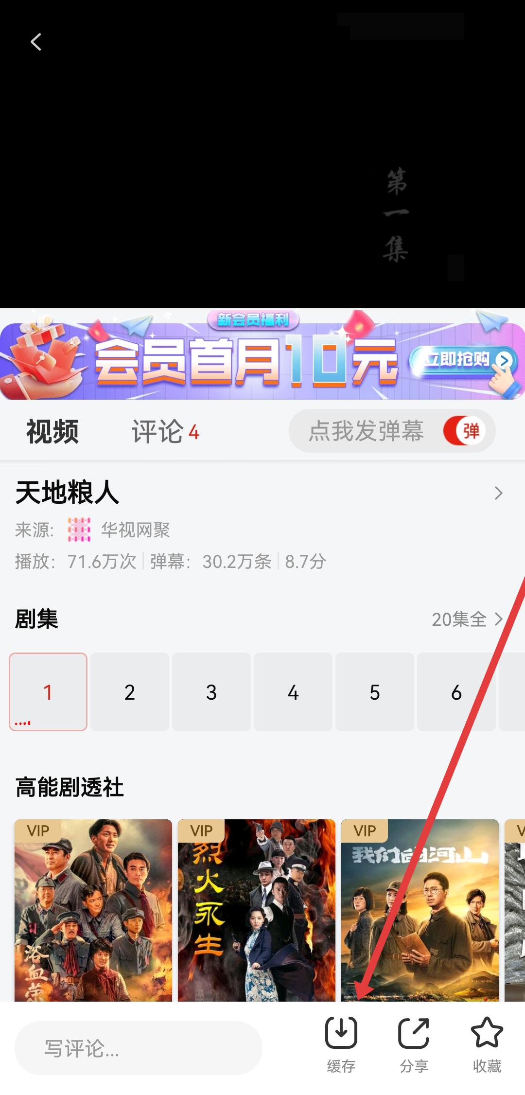 2、在電視劇播放頁面的底部,需要點(diǎn)擊緩存的按鈕,進(jìn)入選擇要緩存的分集界面。