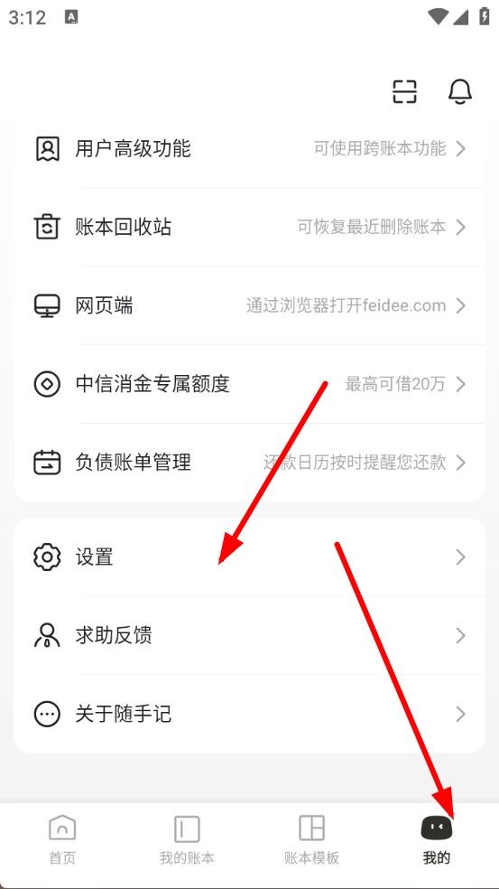 1、打開隨手記APP,進(jìn)入我的,點擊設(shè)置選項。