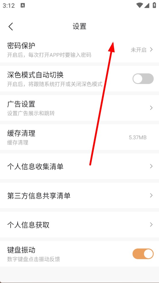 2、在設(shè)置頁面里,找到并點擊密碼保護(hù)選項。