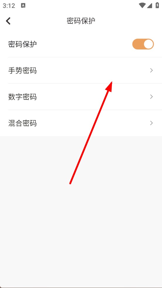 3、開啟密碼保護(hù)開關(guān),選擇想要設(shè)置的密碼類型。