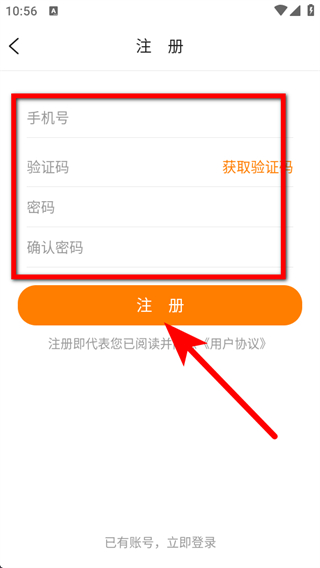 4、填寫手機(jī)號、驗(yàn)證碼、密碼及確認(rèn)密碼,點(diǎn)擊注冊,完成注冊操作。