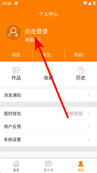 1、在茄子APP首頁,點(diǎn)擊右下角我的選項(xiàng),進(jìn)入個(gè)人中心界面。