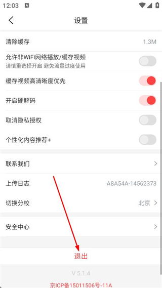 3、進(jìn)入設(shè)置頁(yè)面后,找到并點(diǎn)擊退出選項(xiàng)。