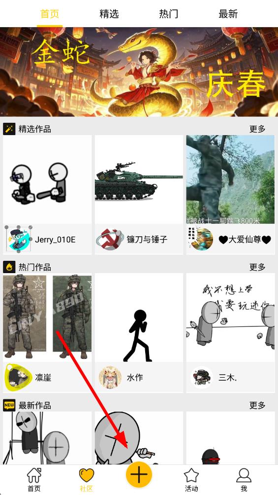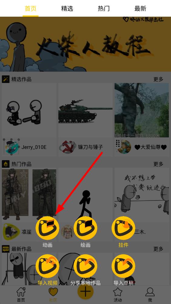 2、點(diǎn)擊后,在彈出的選項(xiàng)中,選擇動畫功能,進(jìn)入動畫創(chuàng)作準(zhǔn)備頁面。