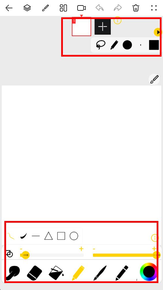 4、進(jìn)入創(chuàng)作界面,利用頂部和底部工具欄中的畫筆、圖形、填充等工具,設(shè)計(jì)動畫元素和關(guān)鍵幀,完成動畫創(chuàng)作。