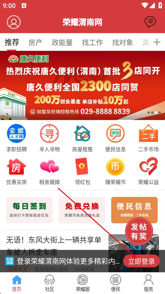 2、進(jìn)入APP主界面,點(diǎn)擊右下角的立即登錄。