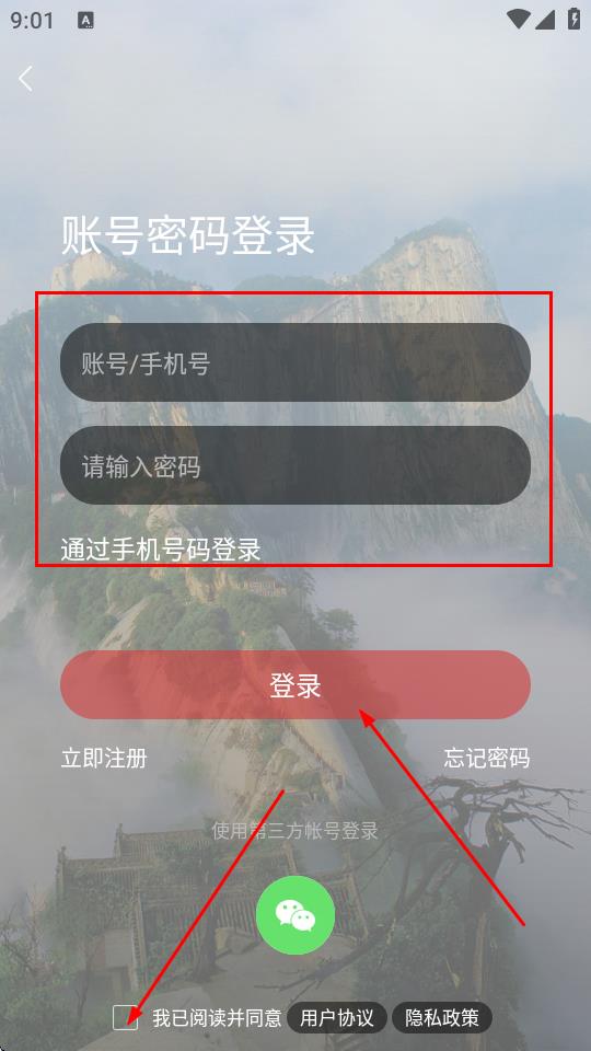 4、在賬號密碼登錄頁面,輸入賬號/手機(jī)號和密碼,勾選我已閱讀并同意用戶協(xié)議隱私政策,點(diǎn)擊登錄,即可完成賬號登錄。