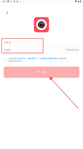 2、進(jìn)入登錄的頁(yè)面內(nèi),輸入要注冊(cè)的手機(jī)號(hào)、驗(yàn)證碼,再點(diǎn)擊下一步。