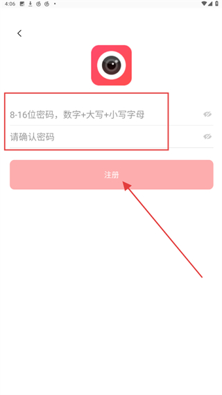 3、進(jìn)入最后一步,在該頁(yè)面內(nèi)輸入注冊(cè)密碼后,再點(diǎn)擊注冊(cè)的按鈕。