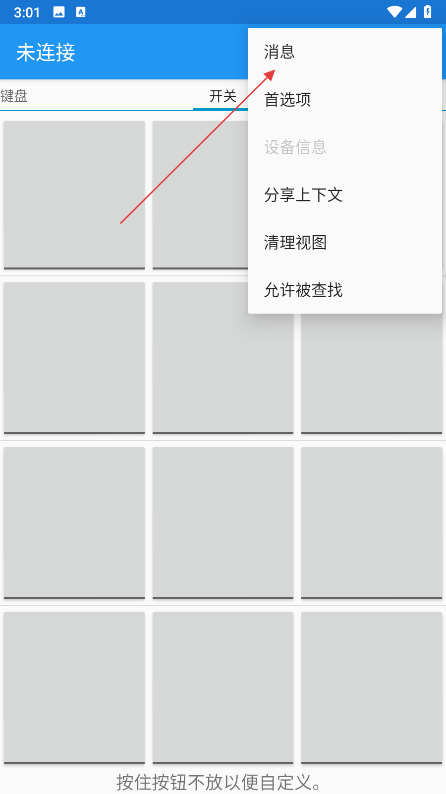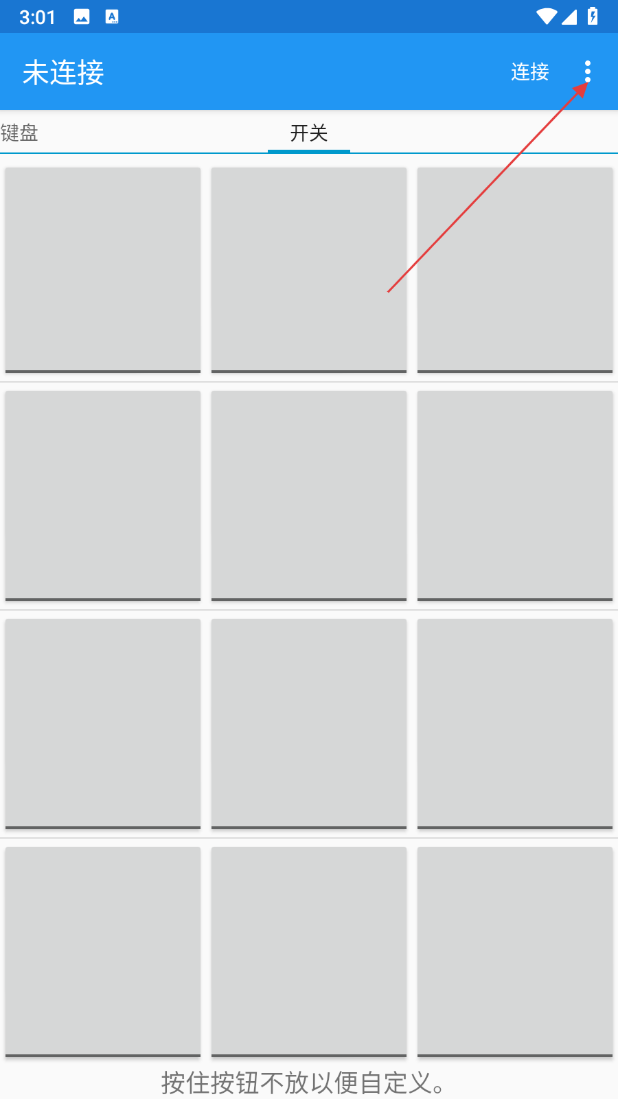 1、打開(kāi)藍(lán)牙串口應(yīng)用,點(diǎn)擊界面右上角的三點(diǎn)菜單圖標(biāo)。