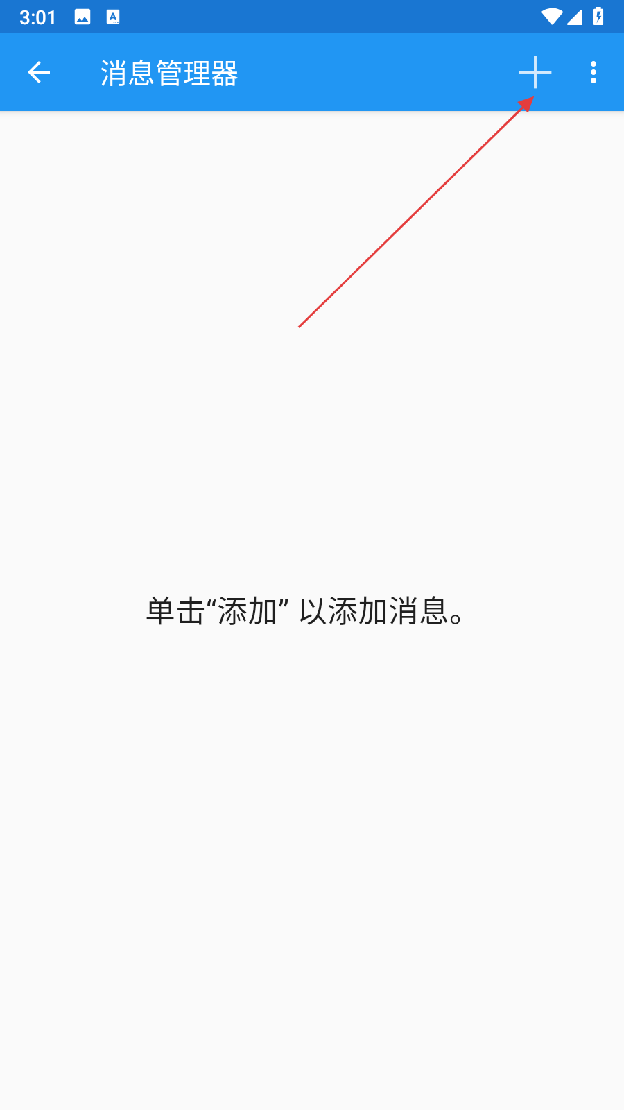 3、在消息管理器頁(yè)面,點(diǎn)擊右上角的+號(hào)按鈕,彈出消息編輯器窗口,在名稱輸入框中填寫(xiě)消息名稱。