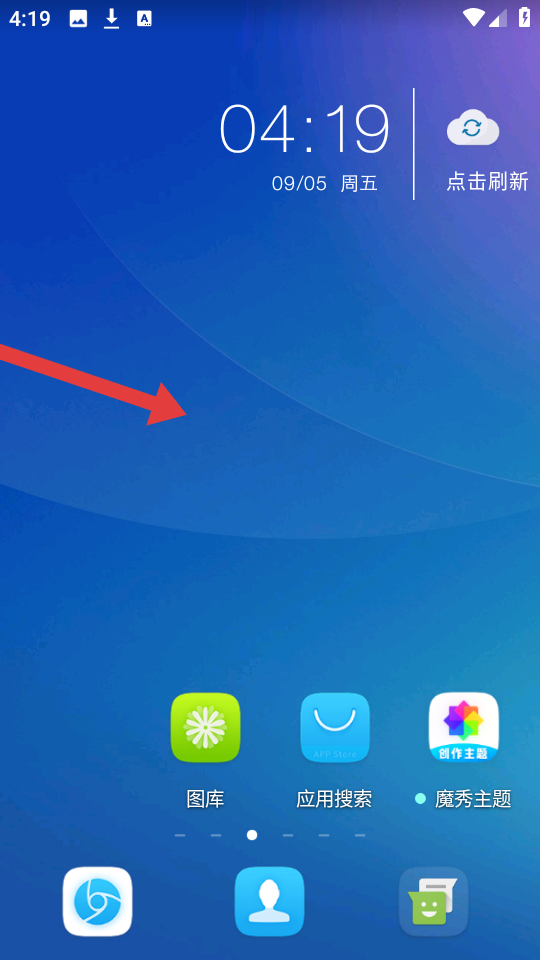 1、在魔秀桌面的主屏幕上,需要長(zhǎng)按空白區(qū)域,調(diào)出操作的菜單。