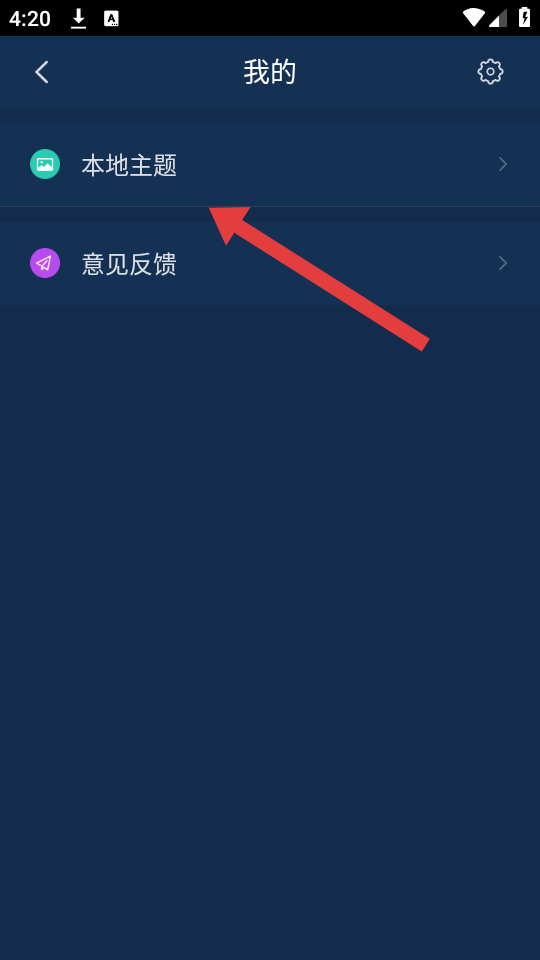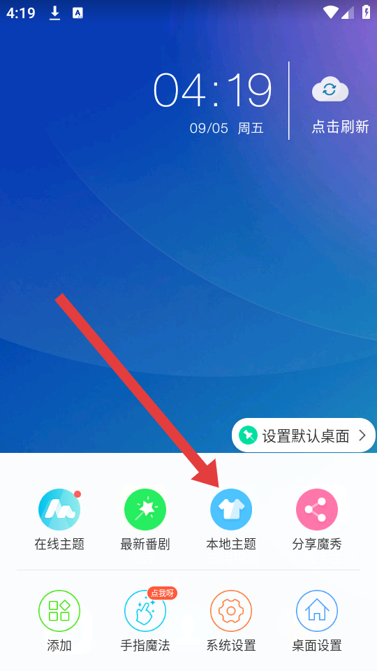 2、在彈出的操作菜單中,點(diǎn)擊本地主題的選項(xiàng),進(jìn)入主題/壁紙選擇頁(yè)面。