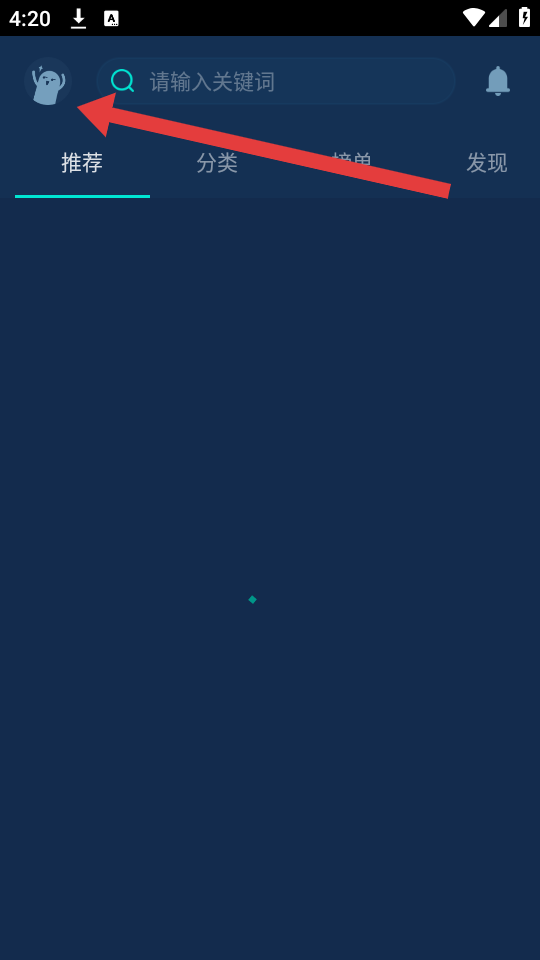 3、可以選擇等待推薦主題加載出來?yè)Q上,或者選擇點(diǎn)擊左上角頭像圖標(biāo),進(jìn)入我的頁(yè)面。