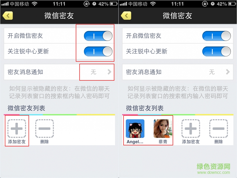 【微信密友】能夠根據(jù)微信的通訊錄設(shè)置包括聊天群在內(nèi)的密友,并設(shè)置密碼保護(hù).通過搖動(dòng)手機(jī)或鎖屏等便捷方式直接隱藏微信密友和聊天記錄.