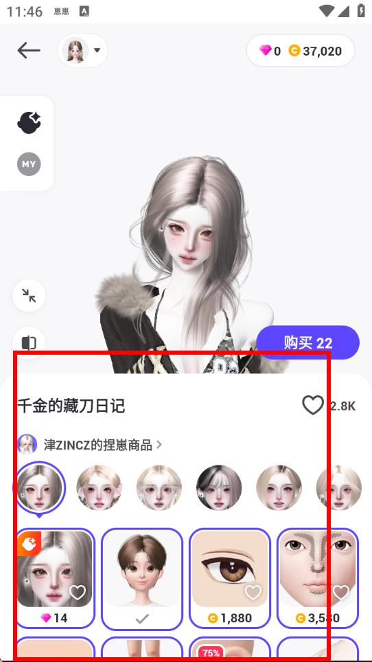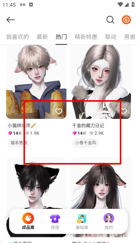 2、進(jìn)入捏崽商店后,在展示頁面中選擇自己喜歡的捏臉風(fēng)格,比如千金的藏刀日記。