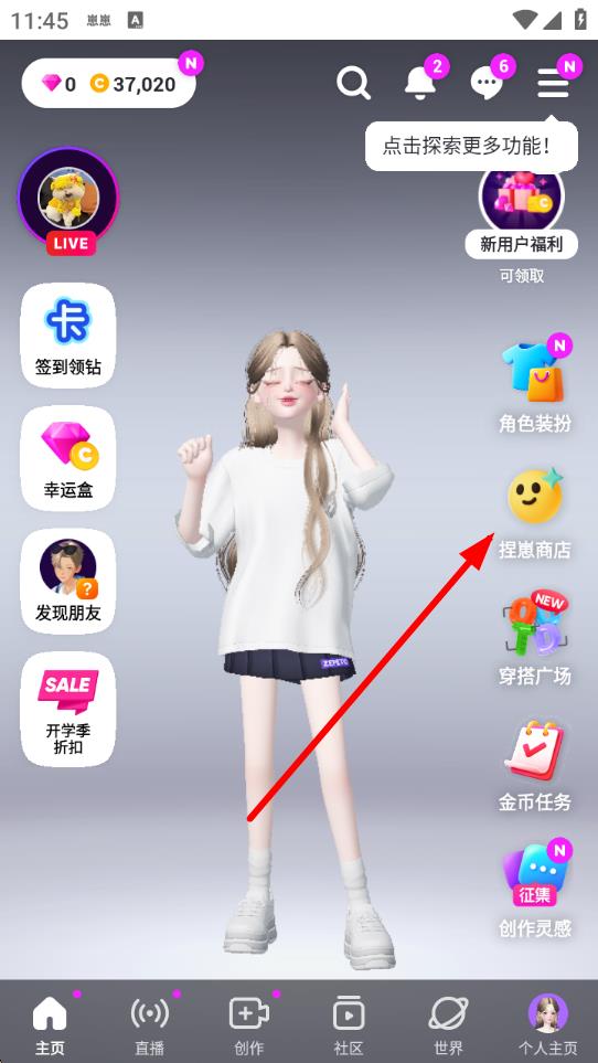 1、打開崽崽zepeto應(yīng)用進(jìn)入主界面,點擊右側(cè)的捏崽商店圖標(biāo)。